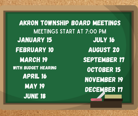 Akron Township Hall 4280 W Bay City Forestville Rd Unionville, MI 48767 Phone: 989-674-2280